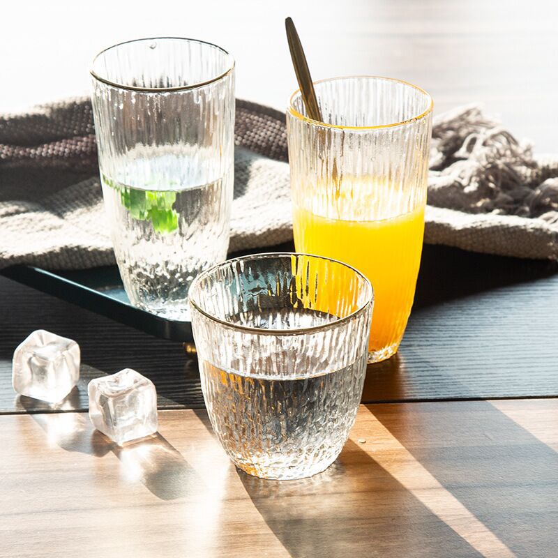 Multiple capacities glass drinking cups beverage use.